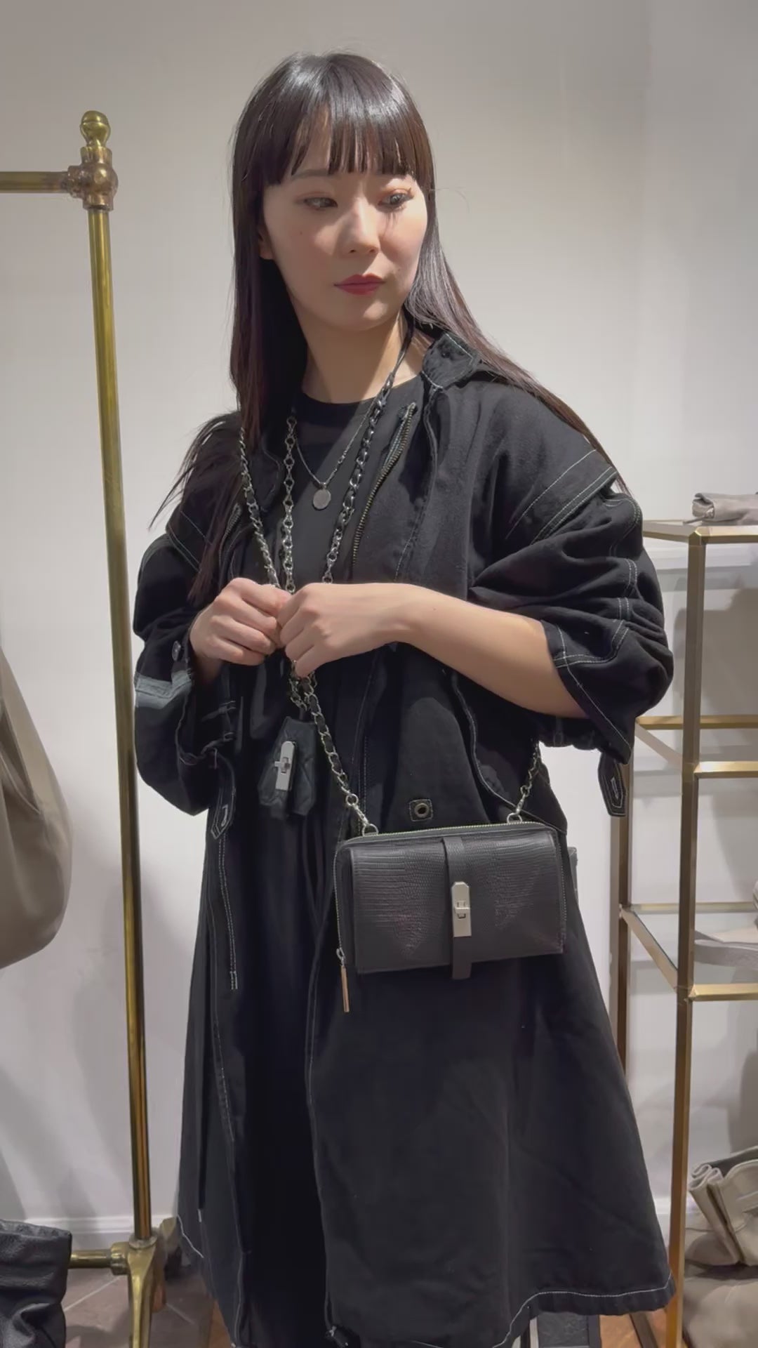 ・ウォレットショルダー リザード型押し -vintage ブラック- チェーンショルダー (MUL008-225039-1)