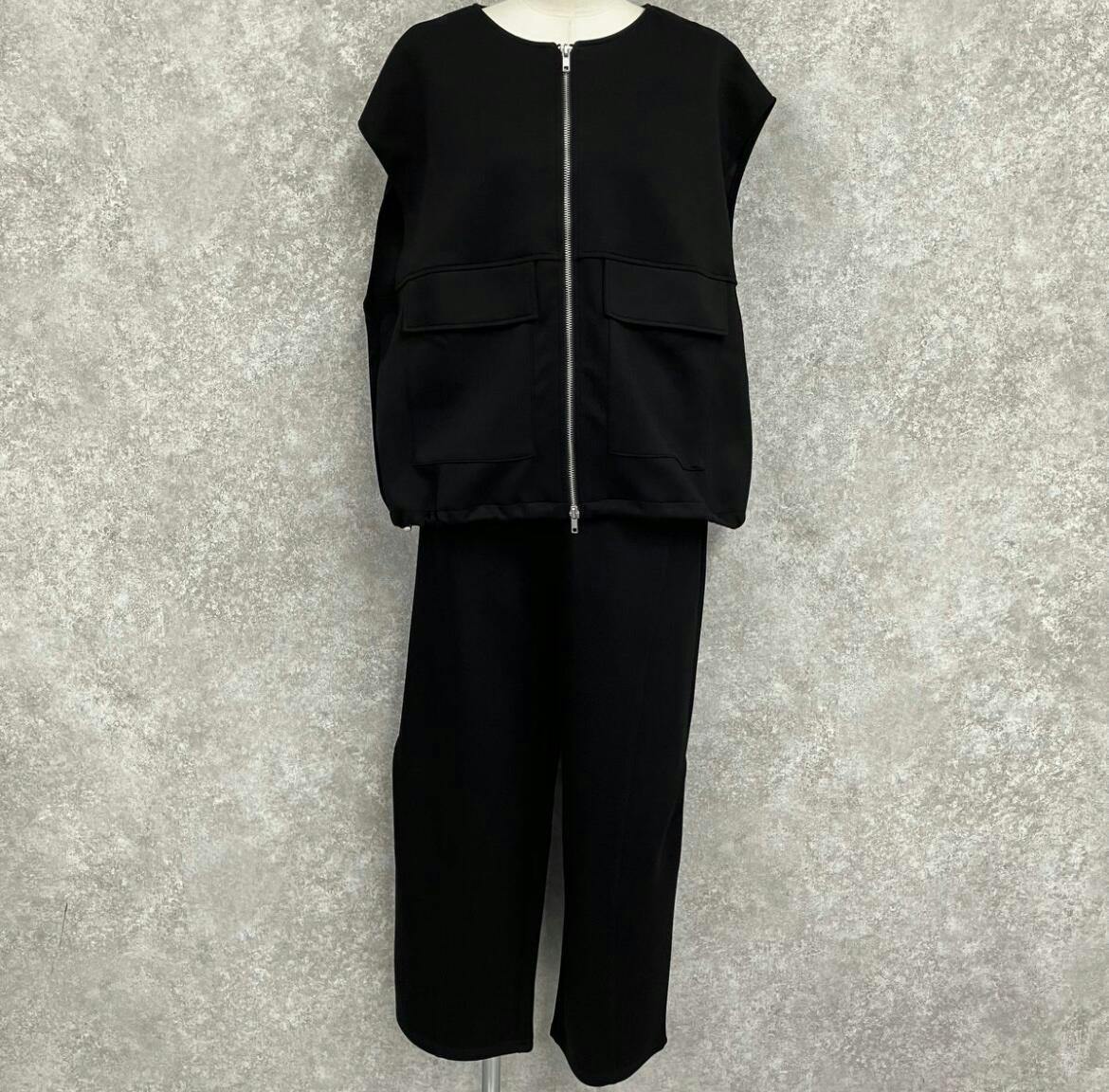 セットアップ ジップベスト・ワイドスウェットパンツ -ブラック- ※6/18~24迄に順次発送予定
