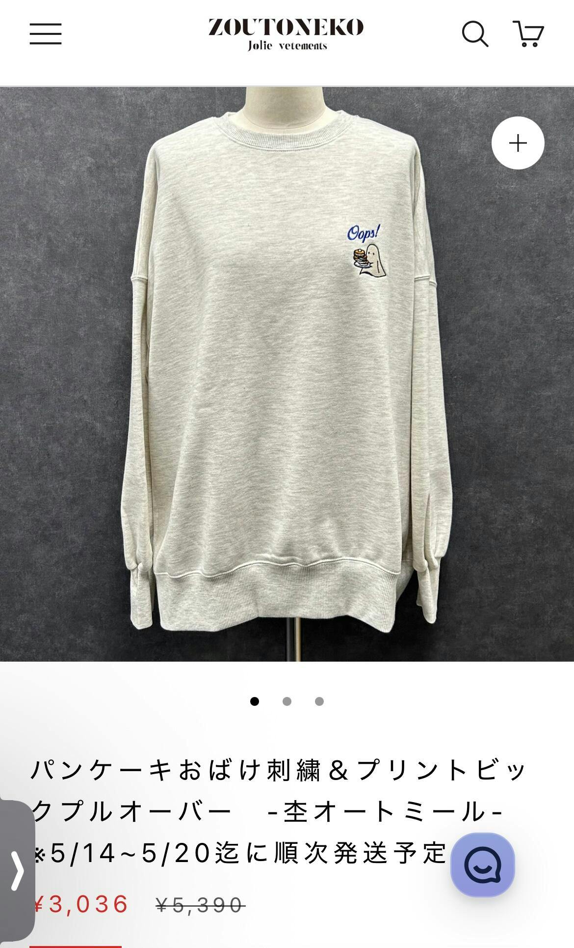パンケーキおばけ刺繍&プリントビックプルオーバー -杢オートミール- ※5/14~5/20迄に順次発送予定