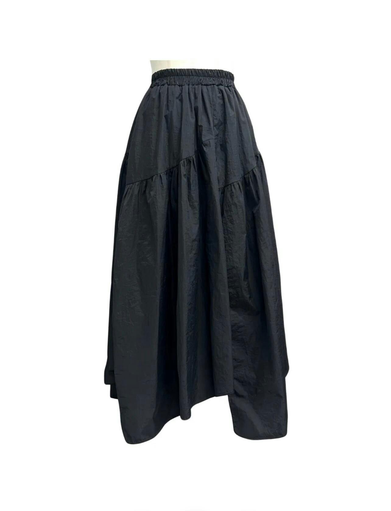 ナイロンタックギャザーアシンメトリーヘム スカート -ブラック- ※3/19〜25迄に順次発送予定