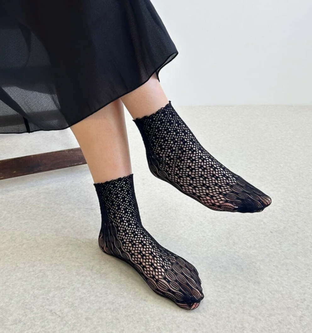 繊細な総レースがより女性らしく足元を映えさせてくれるショートソックス。