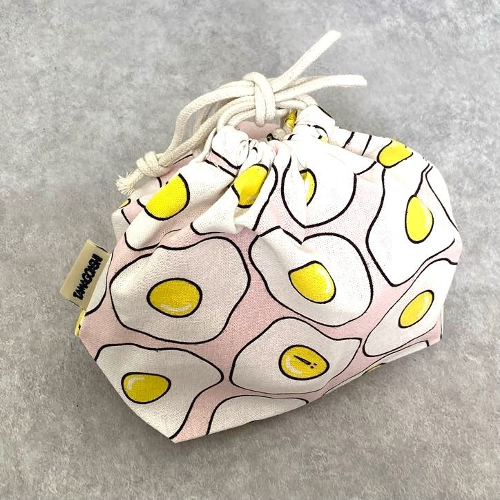 たまごあしのフェイスがインパクト大な総柄巾着★