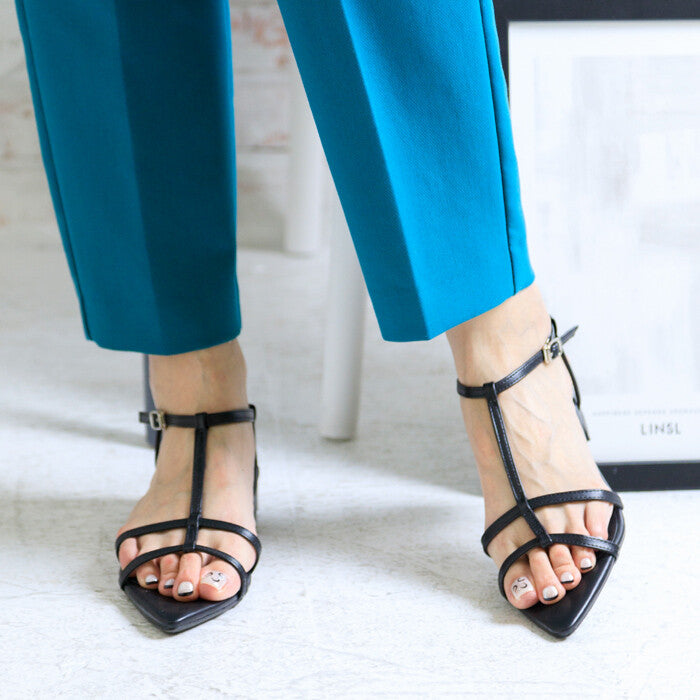 ポインテッドトゥストラップサンダル -ブラック- ※6/18〜24迄に順次発送予定