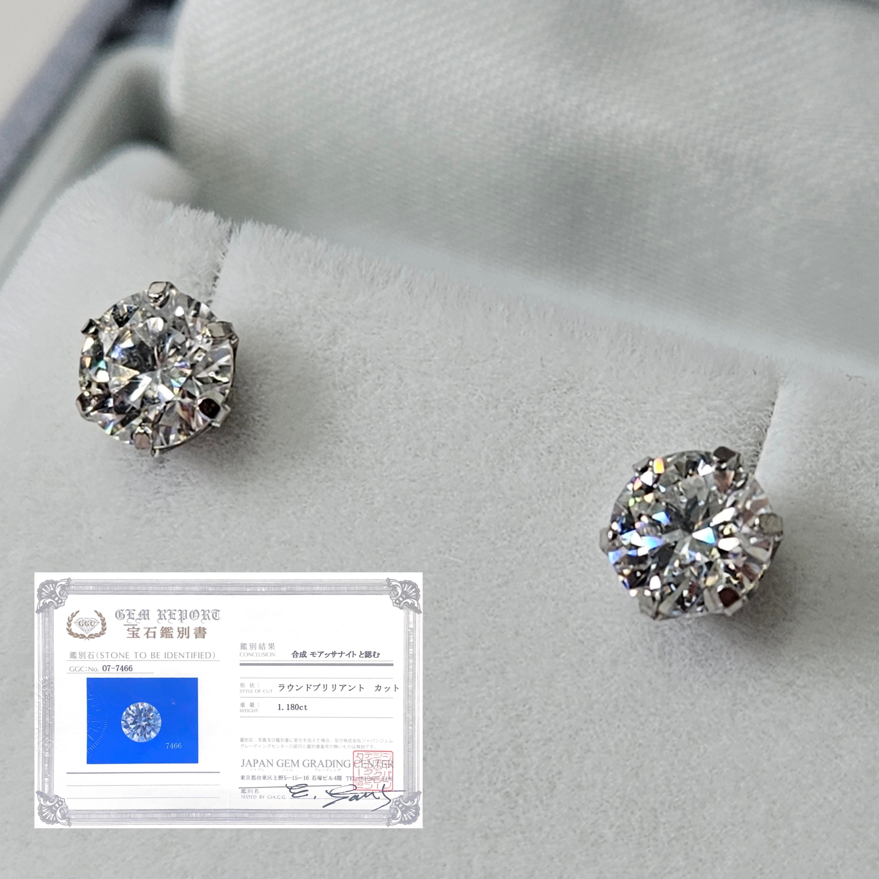 ●モアサナイト:合計1ct相当(約0.5ct相当 2石)、合成モアサナイト、ラウンドブリリアントカット